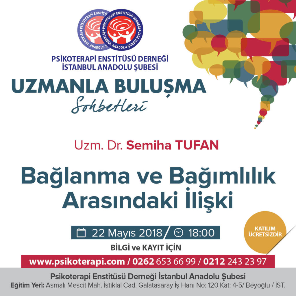 Beyoğlu 22.05.2018 Uzm Dr. Semiha Tufan -“Bağlanma ve bağımlılık arasındaki ilişki” Uzmanla Buluşma Sohbeti